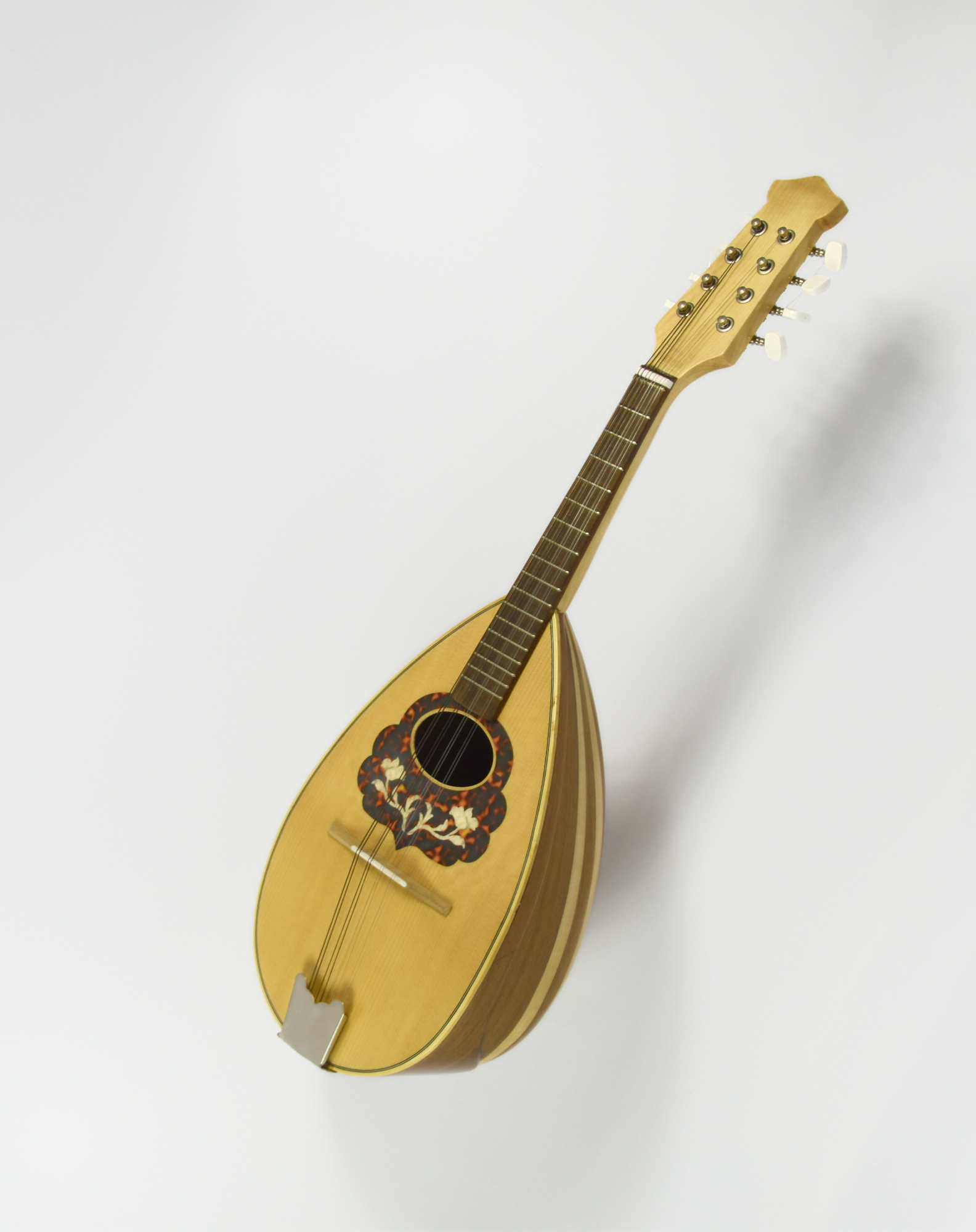 Italian handmade mandolin, with the traditional bowlback Neapolitan shape. Fir solid wood top, maple and walnut bottom stripes.